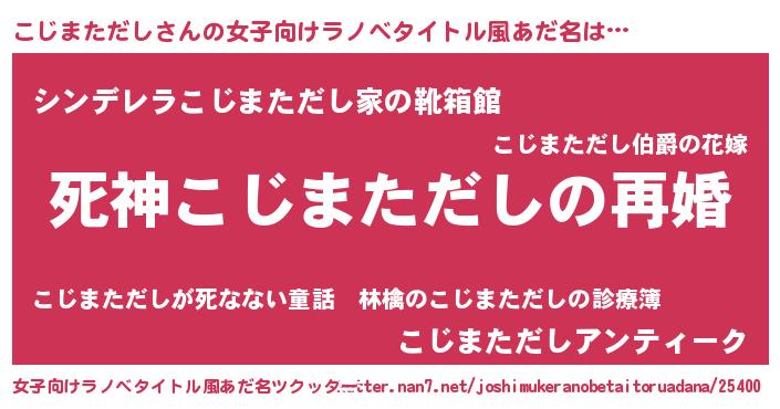 | 男性向けラノベタイトル風あだ名 | 『ノーゲーム・ノーコジマタダシ』 |