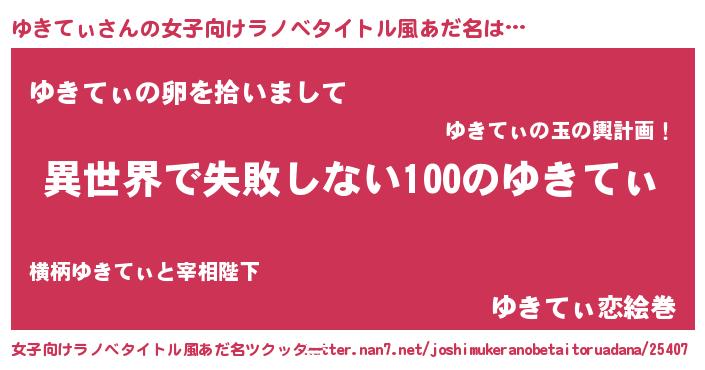 | 胡散臭い通販商品みたいなあだ名 | 『絶対に幸福をもたらす水素水…その名も「ゆきてぃ」』 |