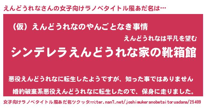 | 胡散臭い通販商品みたいなあだ名 | 『必ず成功する霊験あらたかなお札…その名も「えんどうれな」』 |