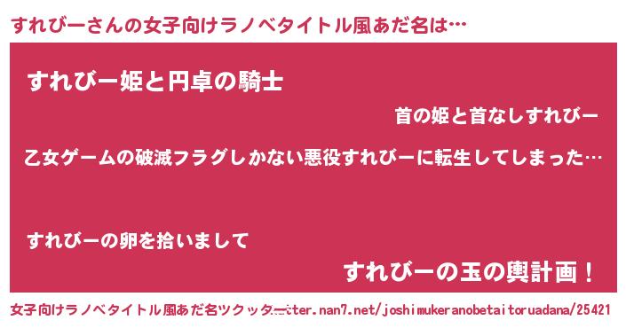 | 男性向けラノベタイトル風あだ名 | 『魔弾の王とすれびー』『すれびーの憂鬱』 |