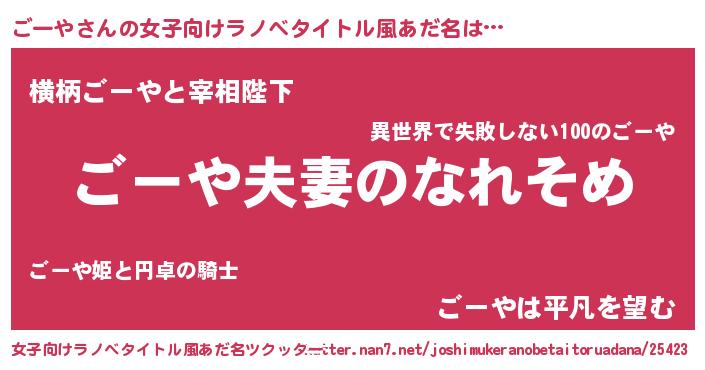 | ヘコむあだ名 | 『ごーお』『ごーや(笑)』『なまこ酢』 |