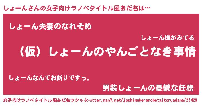| 男性向けラノベタイトル風あだ名 | 『しょーんの憂鬱』 |