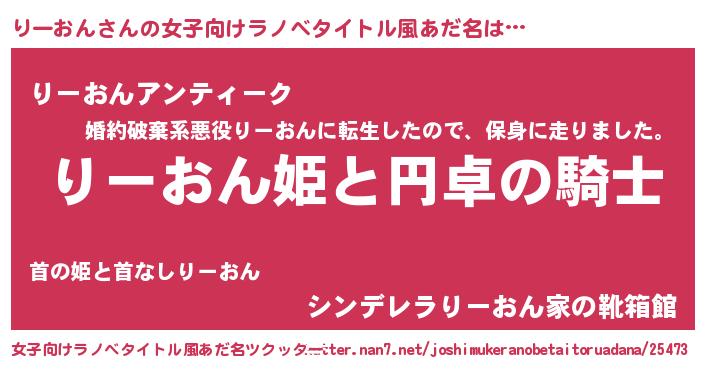 | 男性向けラノベタイトル風あだ名 | 『りーおんの憂鬱』 |