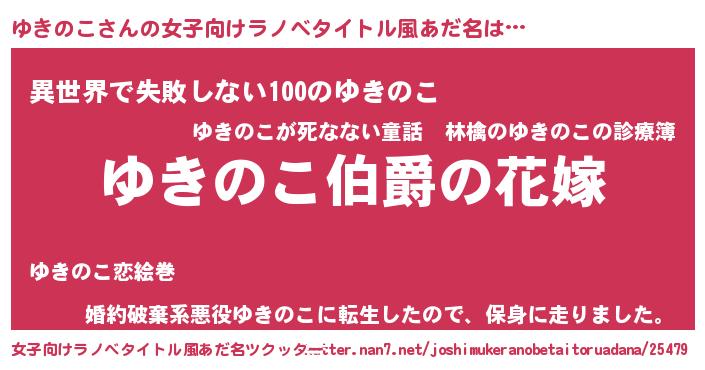 | ファンタジー風あだ名 | 『エターナルユキノコー』『クインユット』 |