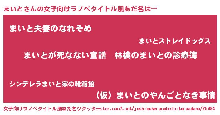 | ヘコむあだ名 | 『まいっふぃ~』『まいと(震え声)』 |