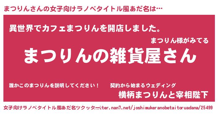 | 男性向けラノベタイトル風あだ名 | 『やはりまつりんの青春ラブコメはまちがっている 』 |