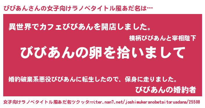 | ヘコむあだ名 | 『びびっちょ』『びびあん(笑)』 |