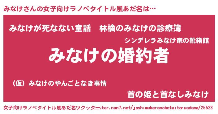 | 恥ずかしいあだ名 | 『みなっちょ』『プリティーみなけ』 |