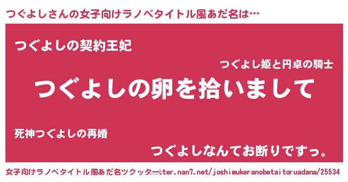 | 男性向けラノベタイトル風あだ名 | 『ダンジョンにつぐよしを求めるのは間違っているだろうか』 |