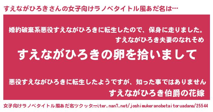 | 胡散臭い通販商品みたいなあだ名 | 『伝統あるサプリメント…その名も「すえながひろき」』 |