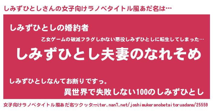 | 男性向けラノベタイトル風あだ名 | 『おまえをオタクにしてやるから、俺をしみずひとしにしてくれ! 』 |