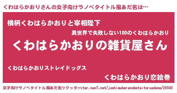 | 男性向けラノベタイトル風あだ名 | 『やはりくわはらかおりの青春ラブコメはまちがっている 』 |