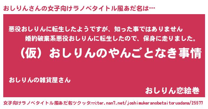| 男性向けラノベタイトル風あだ名 | 『おしりんの憂鬱』『オシリンスレイヤー』 |