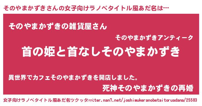 男性向けラノベタイトル風あだ名 | 『はたらくそのやまかずきさま!』 |