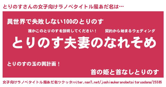 | 欧米人風あだ名 | 『ダニエルとりのす』『マイケルとりのす』 |