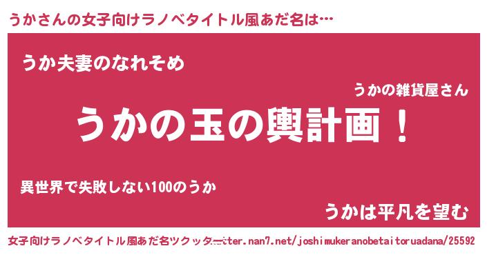 | ヒーロー風カッコイイあだ名 | 『慈愛の使者うか』『炎刃騎士ウカ』 |