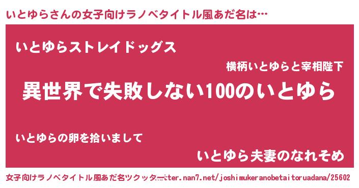 | 意味不明あだ名 | 『永久保存いとゆら』『自称いとゆら』 |