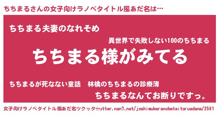 | 男性向けラノベタイトル風あだ名 | 『ちちまるの嫁は女の子じゃないと思った?』 |