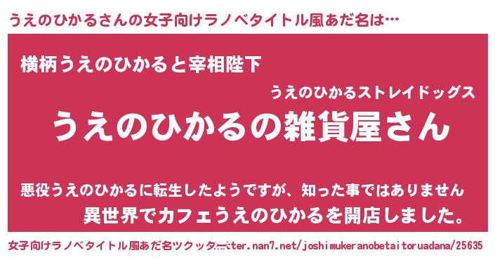 | 男性向けラノベタイトル風あだ名 | 『やはりうえのひかるの青春ラブコメはまちがっている 』 |