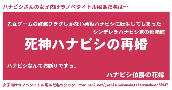 | 男性向けラノベタイトル風あだ名 | 『ノーゲーム・ノーハナビシ』 |