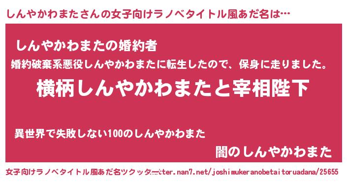 | 胡散臭い通販商品みたいなあだ名 | 『運命の人と巡り会える高級そうな壺…その名も「しんやかわまた」』 |