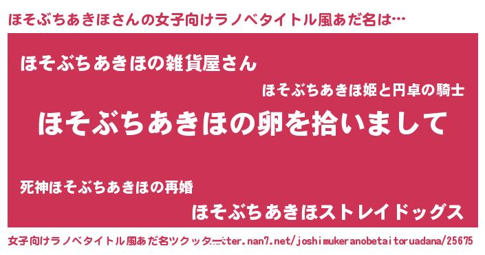 | 胡散臭い通販商品みたいなあだ名 | 『伝統あるサプリメント…その名も「ほそぶちあきほ」』 |