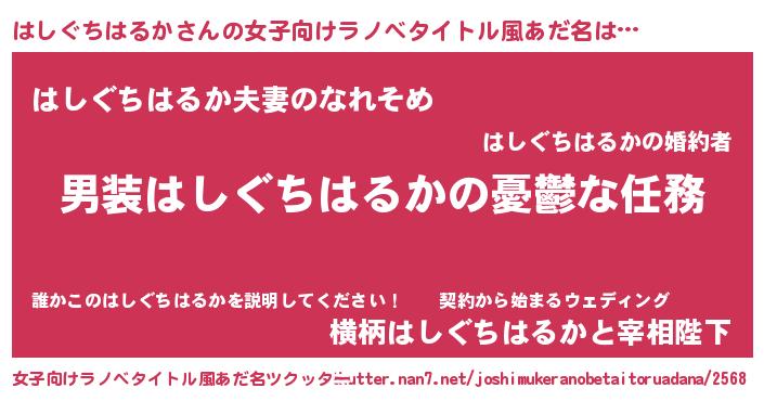 | 男性向けラノベタイトル風あだ名 | 『うちのはしぐちはるかが世界を掌握している!』 |