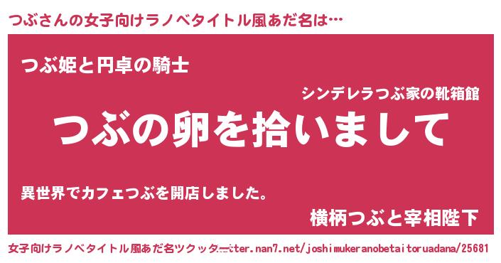 | 男性向けラノベタイトル風あだ名 | 『つぶの嫁は女の子じゃないと思った?』 |