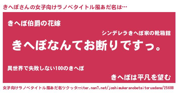 | 意味不明あだ名 | 『自称きへぼ』『きへぼフォーエバー』 |