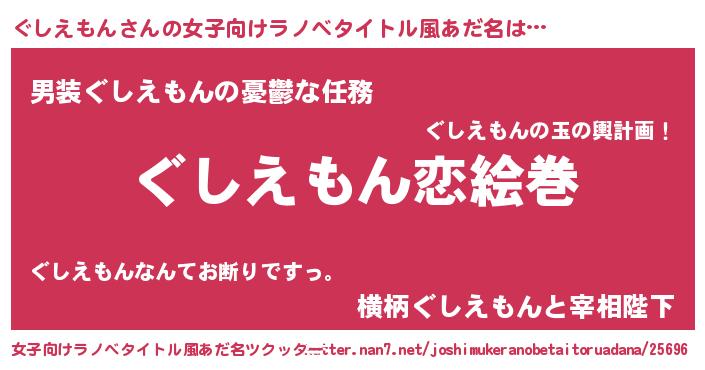 | 男性向けラノベタイトル風あだ名 | 『おまえをオタクにしてやるから、俺をぐしえもんにしてくれ! 』 |