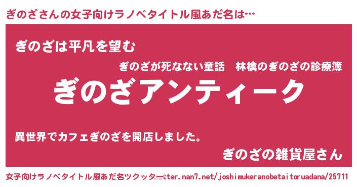 | 意味不明あだ名 | 『自称ぎのざ』『とにかく怪しいぎのざ』 |
