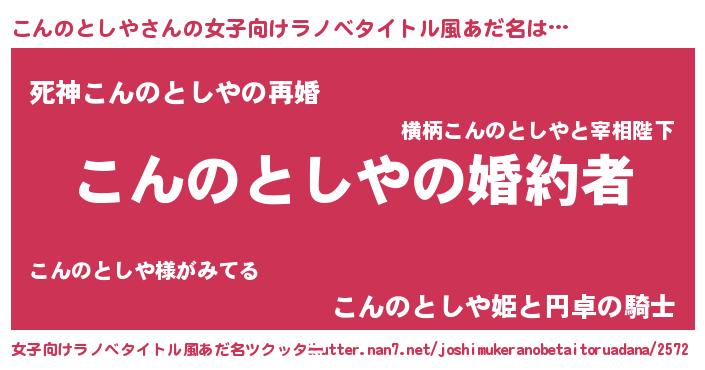| ファンタジー風あだ名 | 『エターナルコンノトシヤー』 |