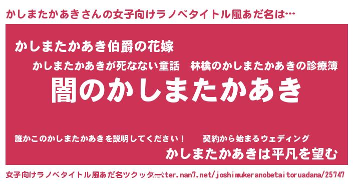 | 意味不明あだ名 | 『自称かしまたかあき』 |