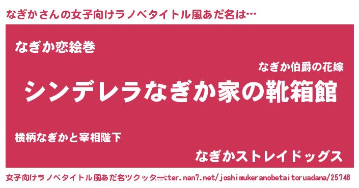 | ヒーロー風カッコイイあだ名 | 『正義の使者なぎか』『超時空戦士ナギカ』 |