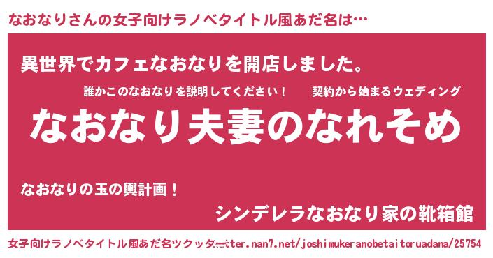 | ヘコむあだ名 | 『なおなり(笑)』『なおにゅー』 |