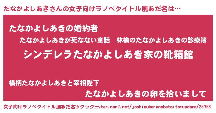 | 男性向けラノベタイトル風あだ名 | 『冴えないたなかよしあきの育てかた』 |