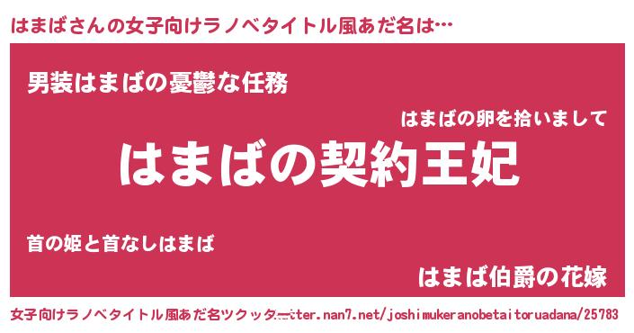 | 胡散臭い通販商品みたいなあだ名 | 『来世でも幸せになれる水素水…その名も「はまば」』 |