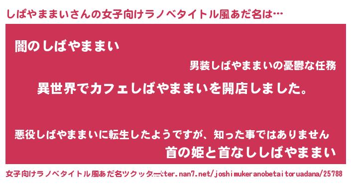 | 男性向けラノベタイトル風あだ名 | 『誰もが恐れるあのしばやままいが、ぼくの専属メイドになるようです。』 |