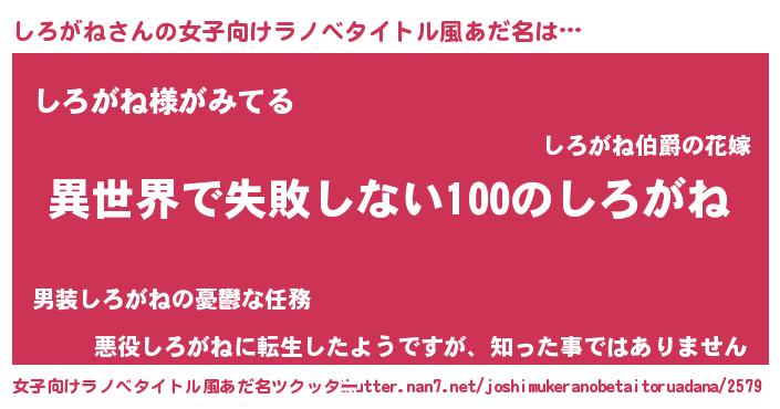 | 胡散臭い通販商品みたいなあだ名 | 『絶対に幸福をもたらす招き猫…その名も「しろがね」』 |