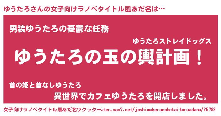 | ヒーロー風カッコイイあだ名 | 『ネオユウタロ』『究極戦士ユウタロ』 |