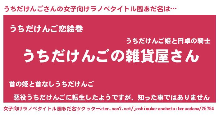 | 男性向けラノベタイトル風あだ名 | 『やはりうちだけんごの青春ラブコメはまちがっている 』 |