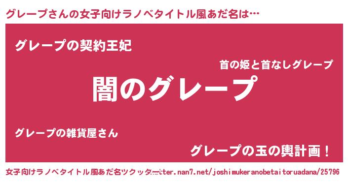 | 男性向けラノベタイトル風あだ名 | 『Re:グレープから始める異世界生活』 |