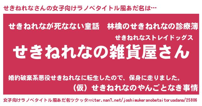 | 意味不明あだ名 | 『せきねれなフォーエバー』 |