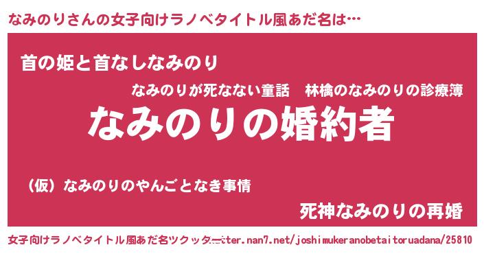 | ヘコむあだ名 | 『酢こんぶ』『なみっふぃ~』 |