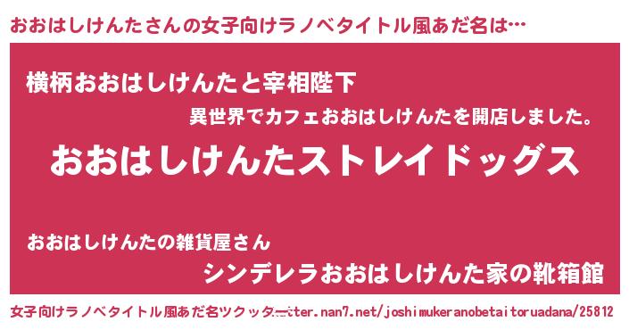 | 男性向けラノベタイトル風あだ名 | 『Re:おおはしけんたから始める異世界生活』 |