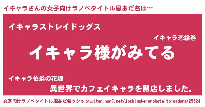 | 男性向けラノベタイトル風あだ名 | 『イキャラの嫁は女の子じゃないと思った?』 |