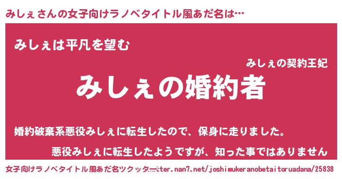 | 胡散臭い通販商品みたいなあだ名 | 『運命の人と巡り会える高級そうな壺…その名も「みしぇ」』 |