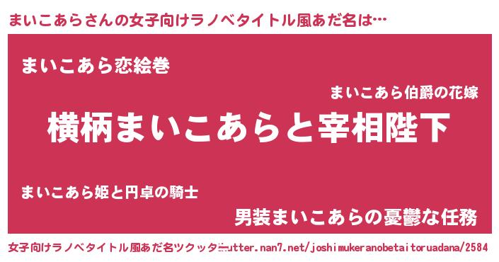 | 男性向けラノベタイトル風あだ名 | 『まいこあらに滅ぼされるだけの簡単なお仕事です』 |