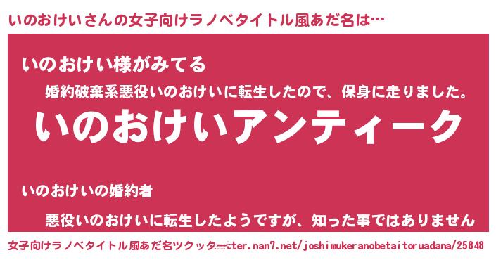 | ヒーロー風カッコイイあだ名 | 『ウルトラ戦士イノオケイ』 |