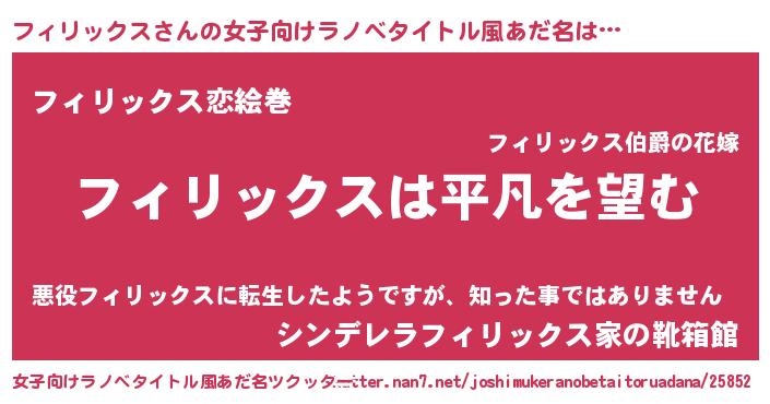 | 男性向けラノベタイトル風あだ名 | 『ダンジョンにフィリックスを求めるのは間違っているだろうか』 |